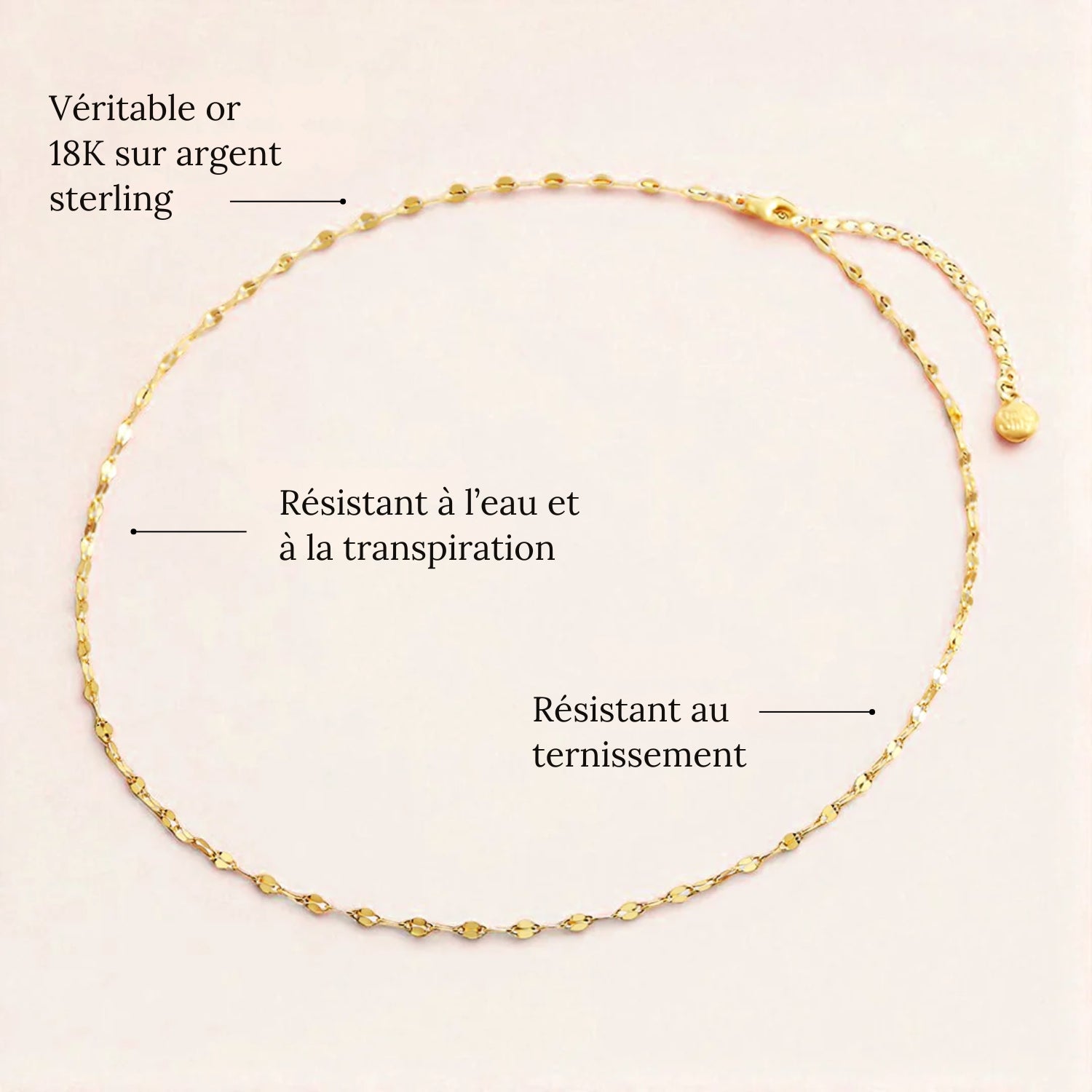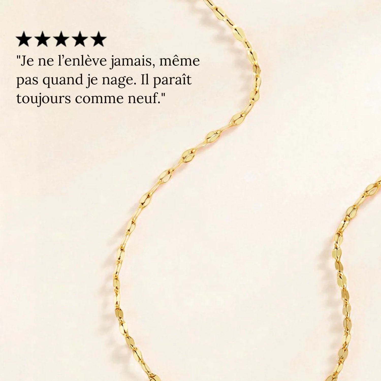 Tous nos bijoux sont testés pour un usage quotidien et garantissent une résistance à l’eau et à la transpiration.