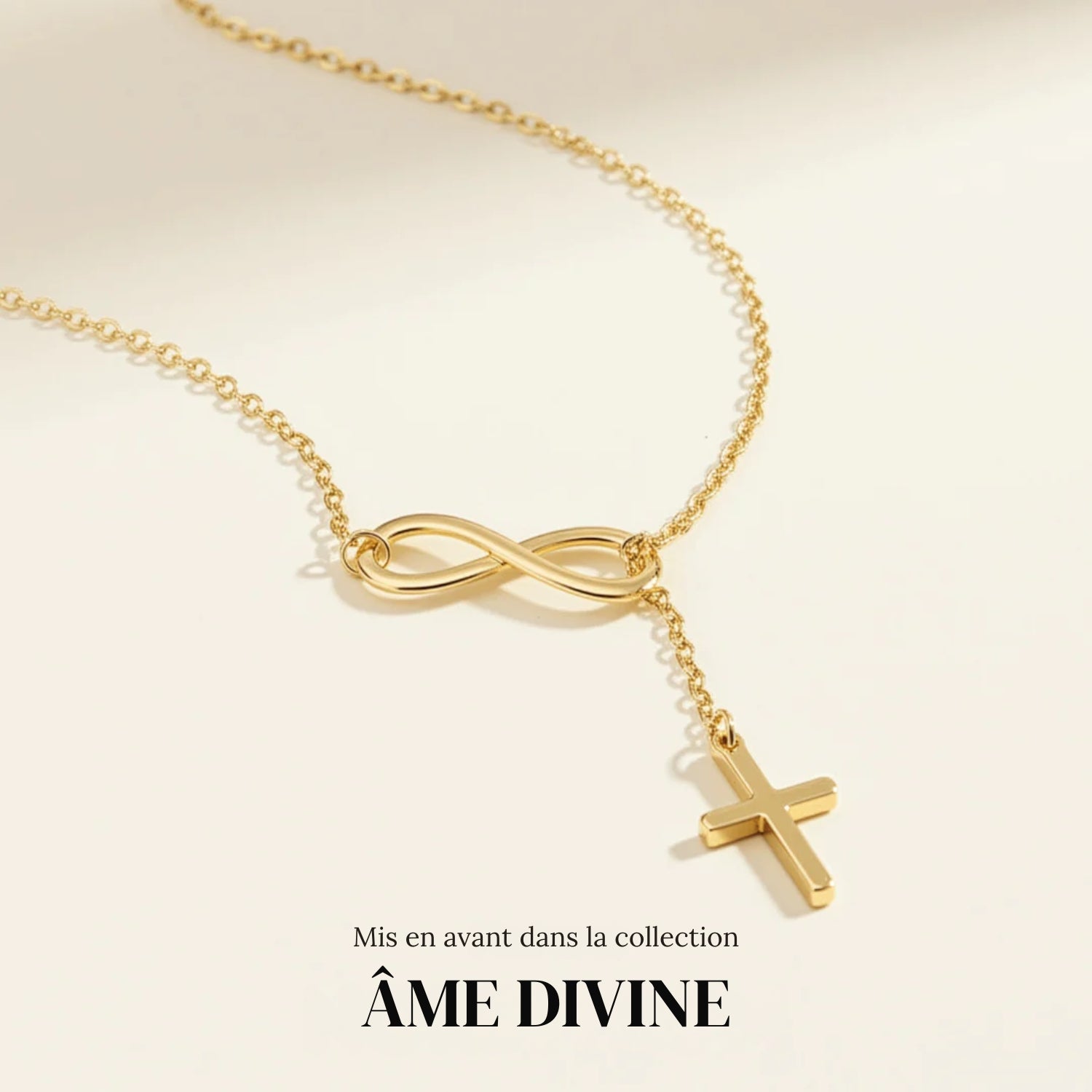 Une fusion délicate entre amour infini et foi inébranlable. Ce collier croix infini se superpose avec élégance ou se porte seul pour un symbole fort et raffiné, à garder tout près du cœur chaque jour.
