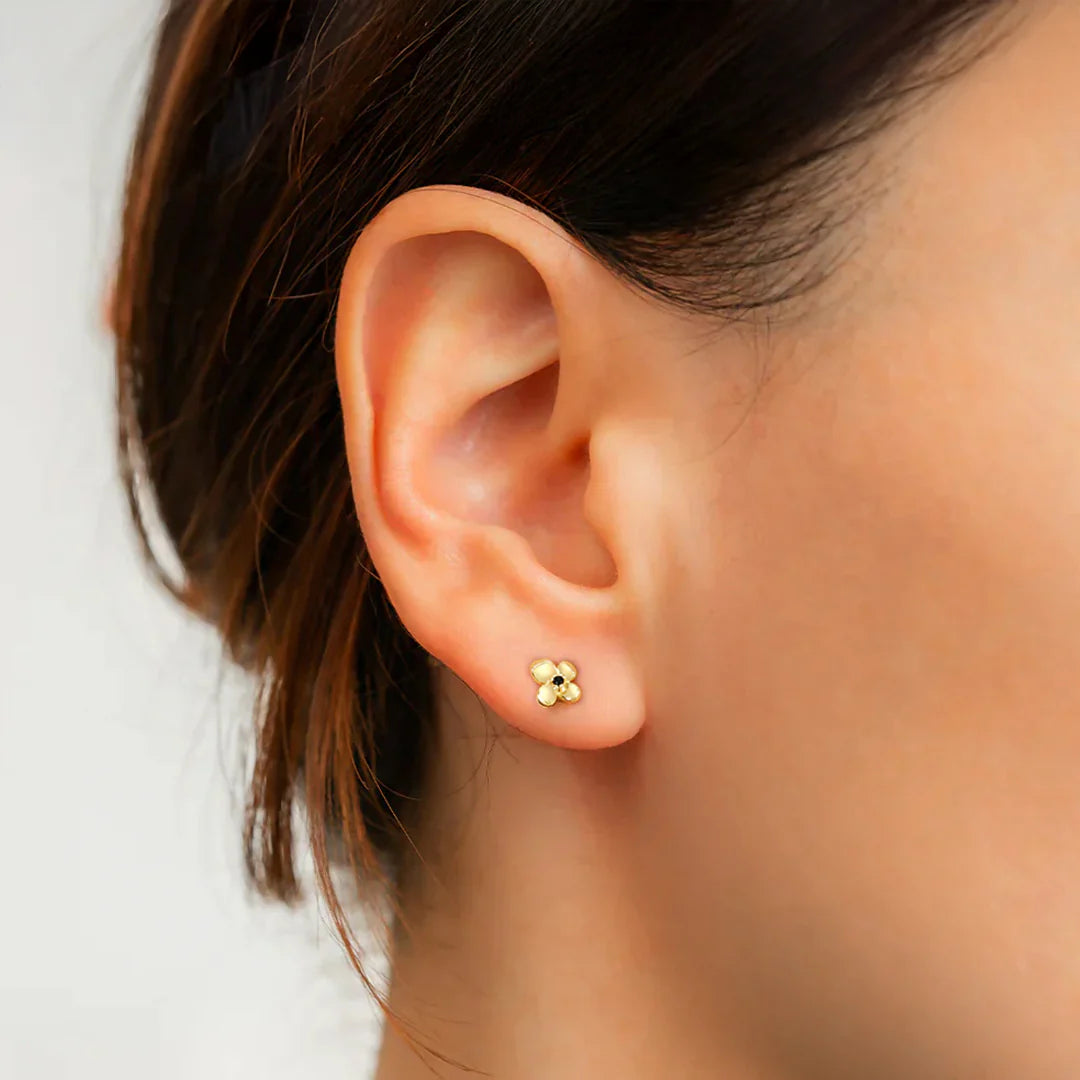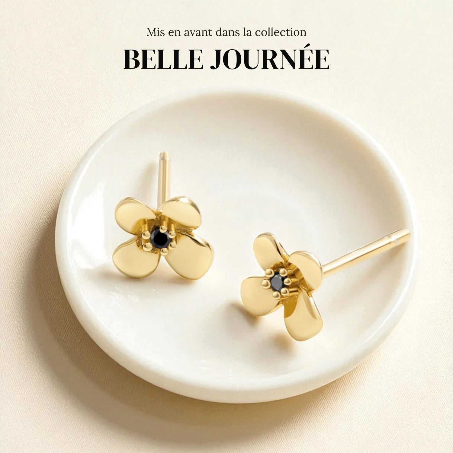 De délicates fleurs éternelles. Ces puces d’oreilles florales, inspirées des pétales sauvages au crépuscule, allient douceur et mystère. Un hommage subtil à la beauté de la nature, à porter tout près de la peau.