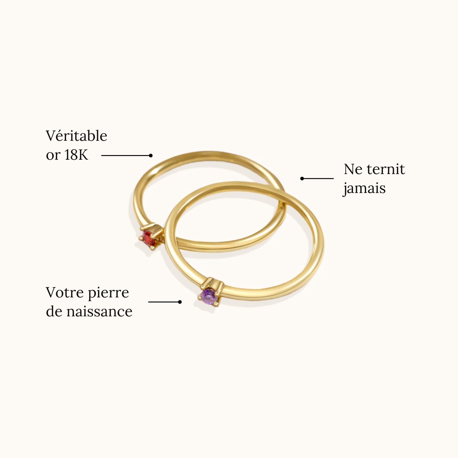 Une bague fine et élégante, ornée d’une pierre de naissance délicatement colorée. À la fois discrète et pleine de sens, elle se porte seule pour une touche subtile ou associée à d’autres bagues pour un style personnalisé. Parfaite pour célébrer votre mois de naissance ou offrir un bijou symbolique à un être cher.