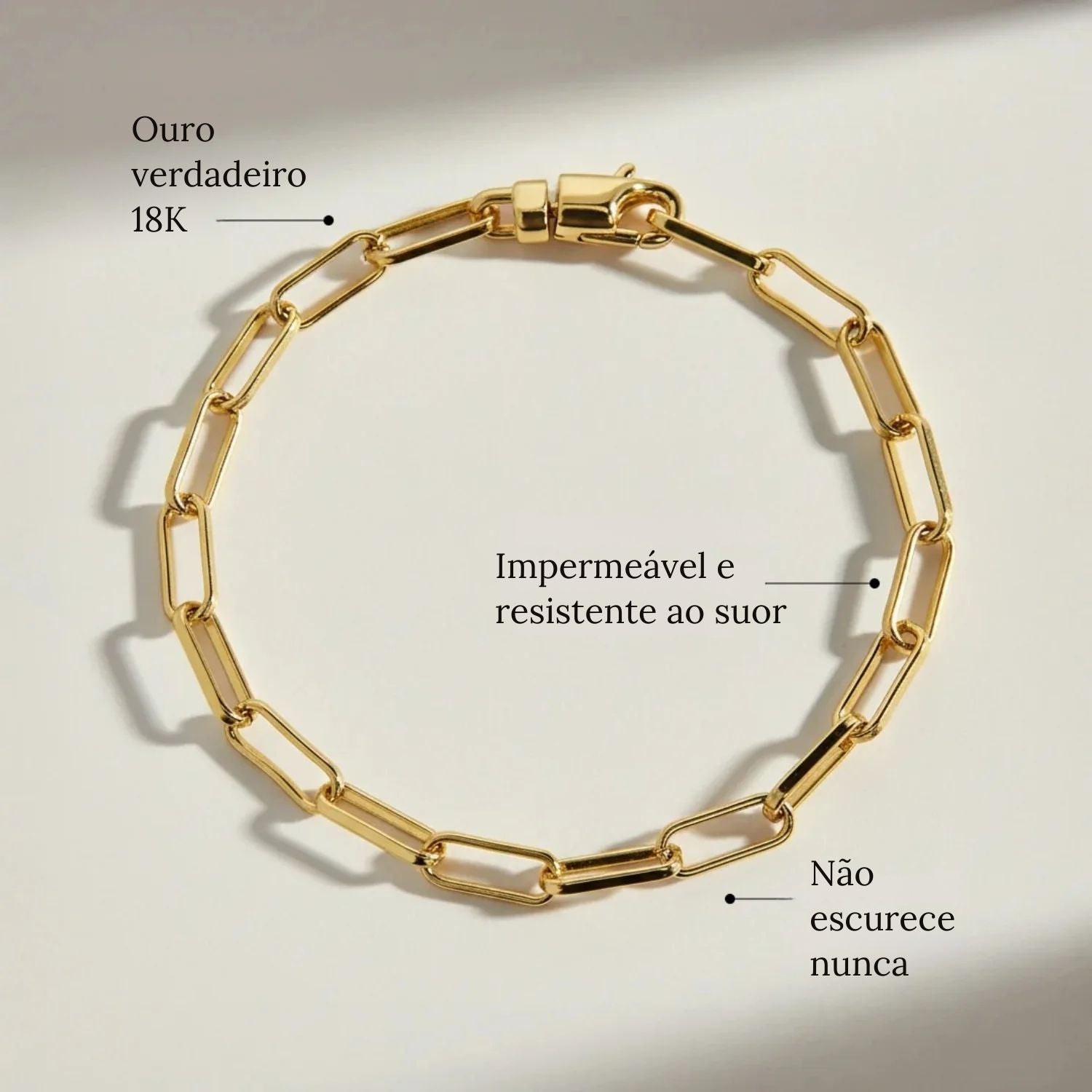 • Materiais: latão banhado a ouro 18K espesso e luxuoso, protegido com um revestimento transparente para um brilho duradouro e resistência no dia a dia