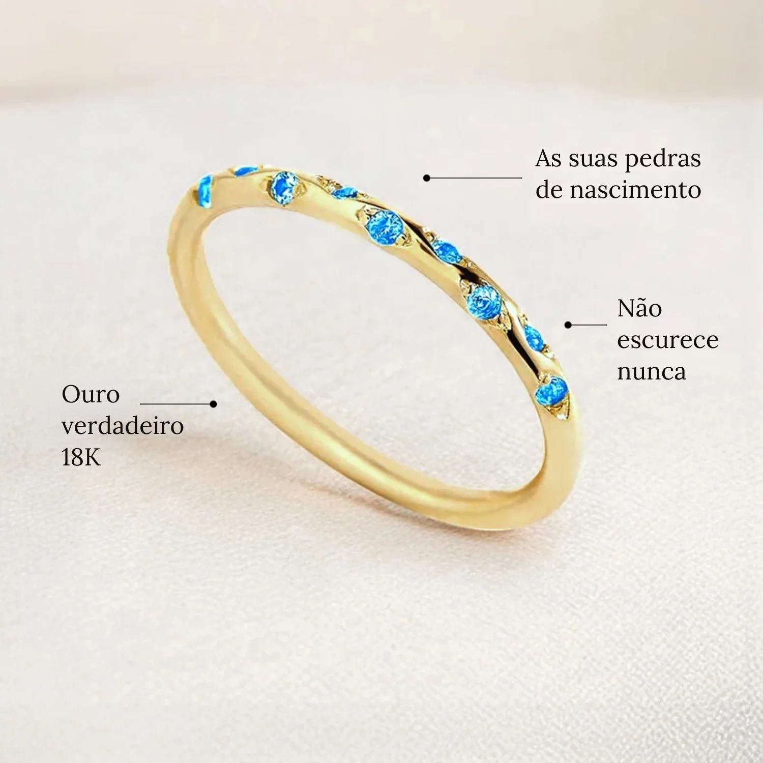 Uma fusão delicada entre estilo pessoal e charme celestial. Este anel adornado com pedras de nascimento oferece um toque de brilho subtil e elegante, enquanto o seu motivo de constelação evoca a beleza do cosmos na ponta dos seus dedos.