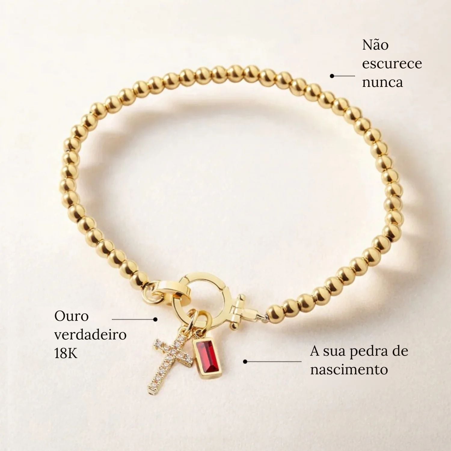 Pulseira Cruz & Pedra de Nascimento