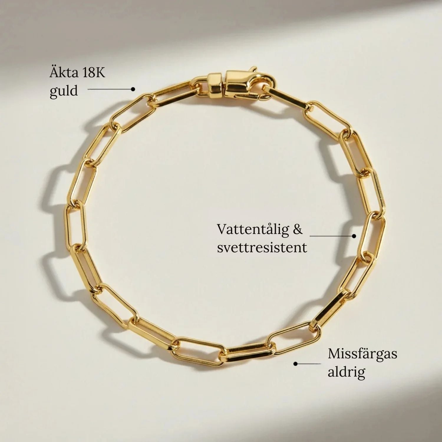 • Material: tjock och exklusiv 18K guldplätering på mässing, skyddad av ett transparent lager för långvarig glans och hållbarhet i vardagen