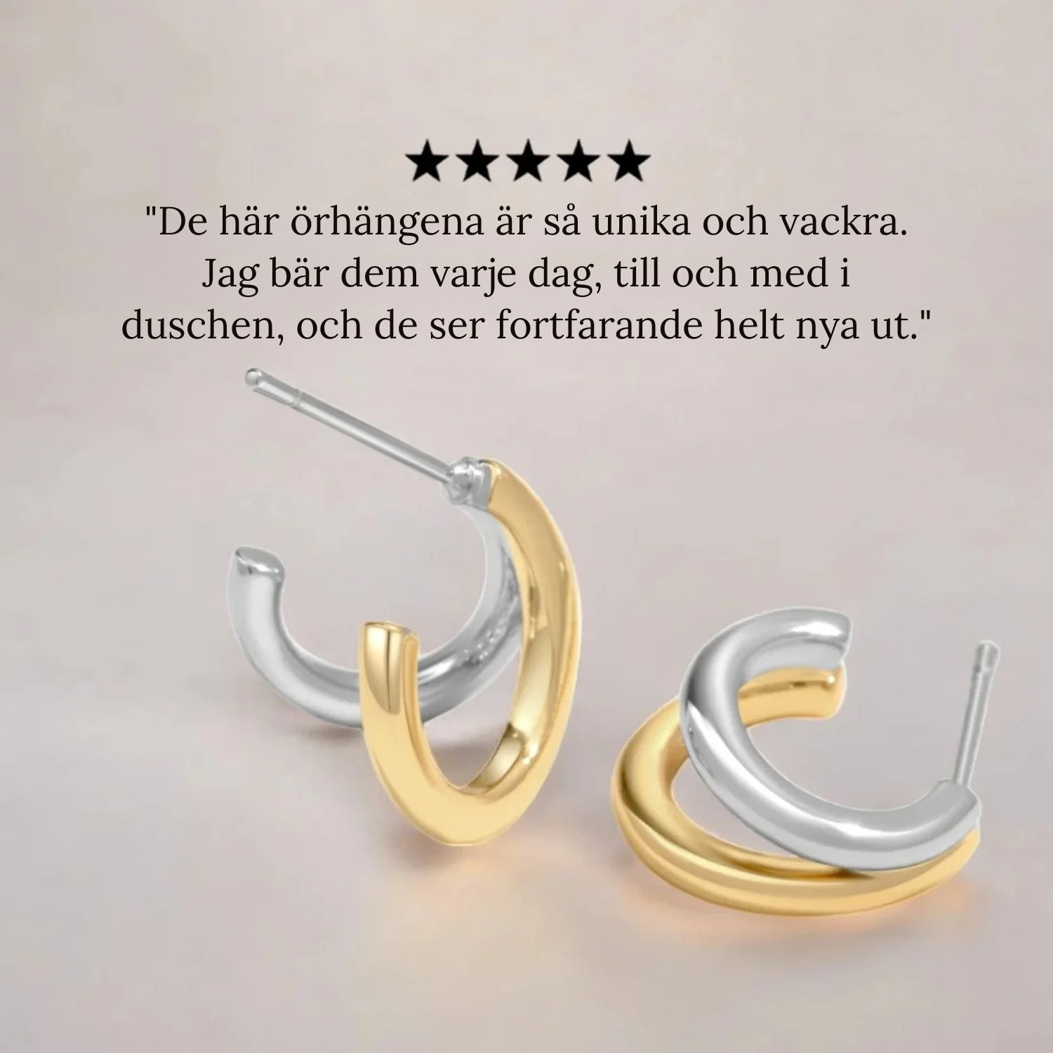 Skapa enkelt känslan av dubbla hål med dessa dubbla bimetallcreoler, där silver och guld möts i en modern och sofistikerad design. Noggrant utformade för optimal komfort och elegans, ger de en chic touch som lyfter varje outfit.